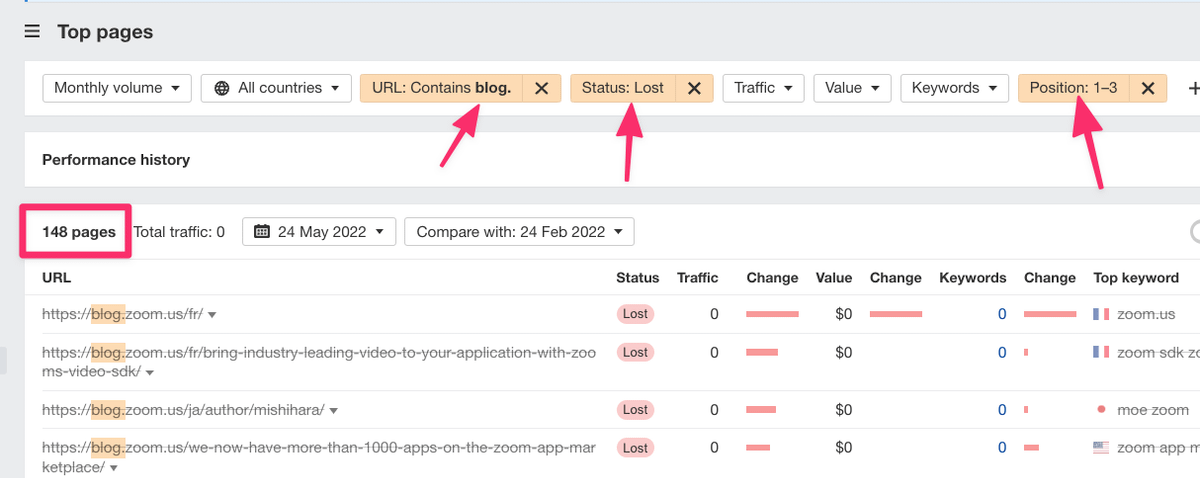 and 148 pages dropped off the top 3 rankings for them: